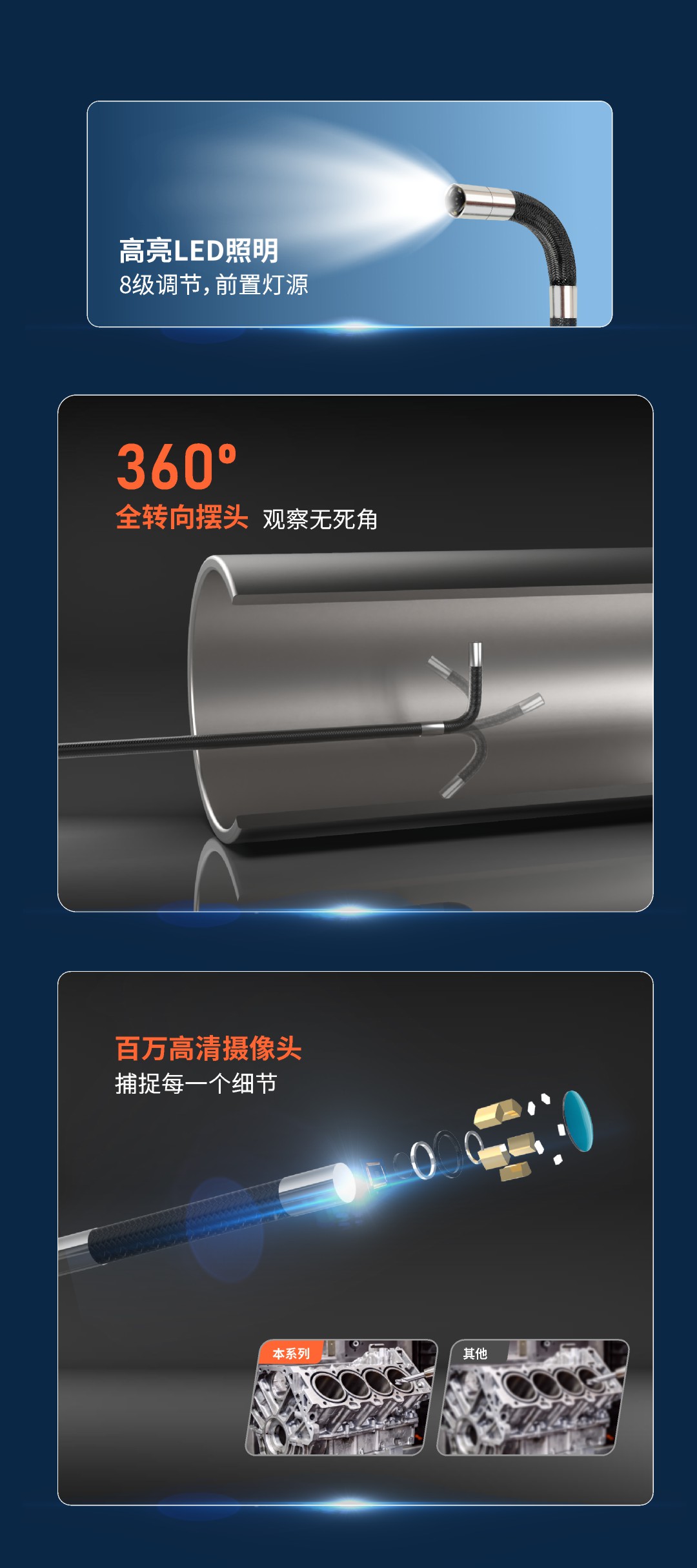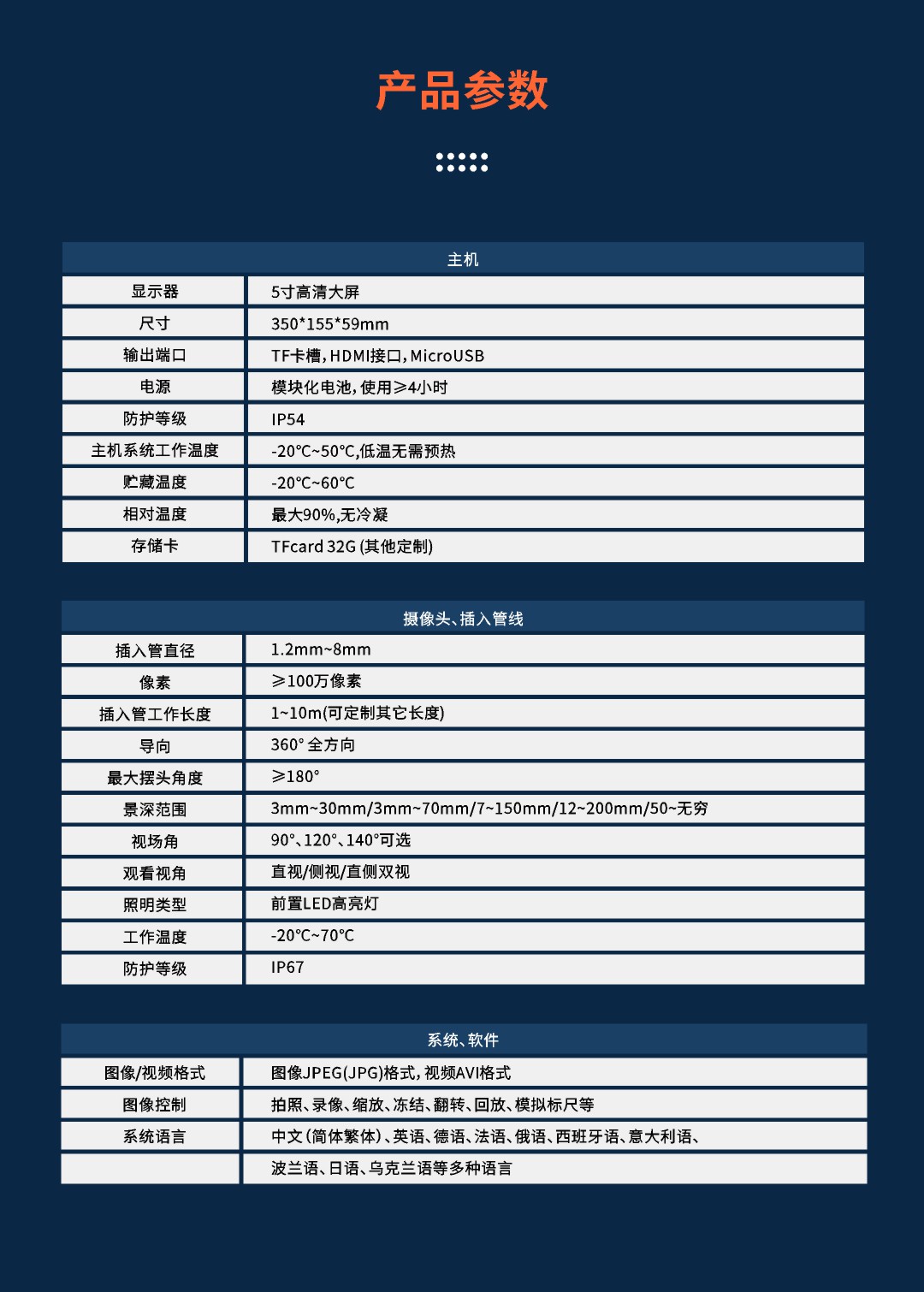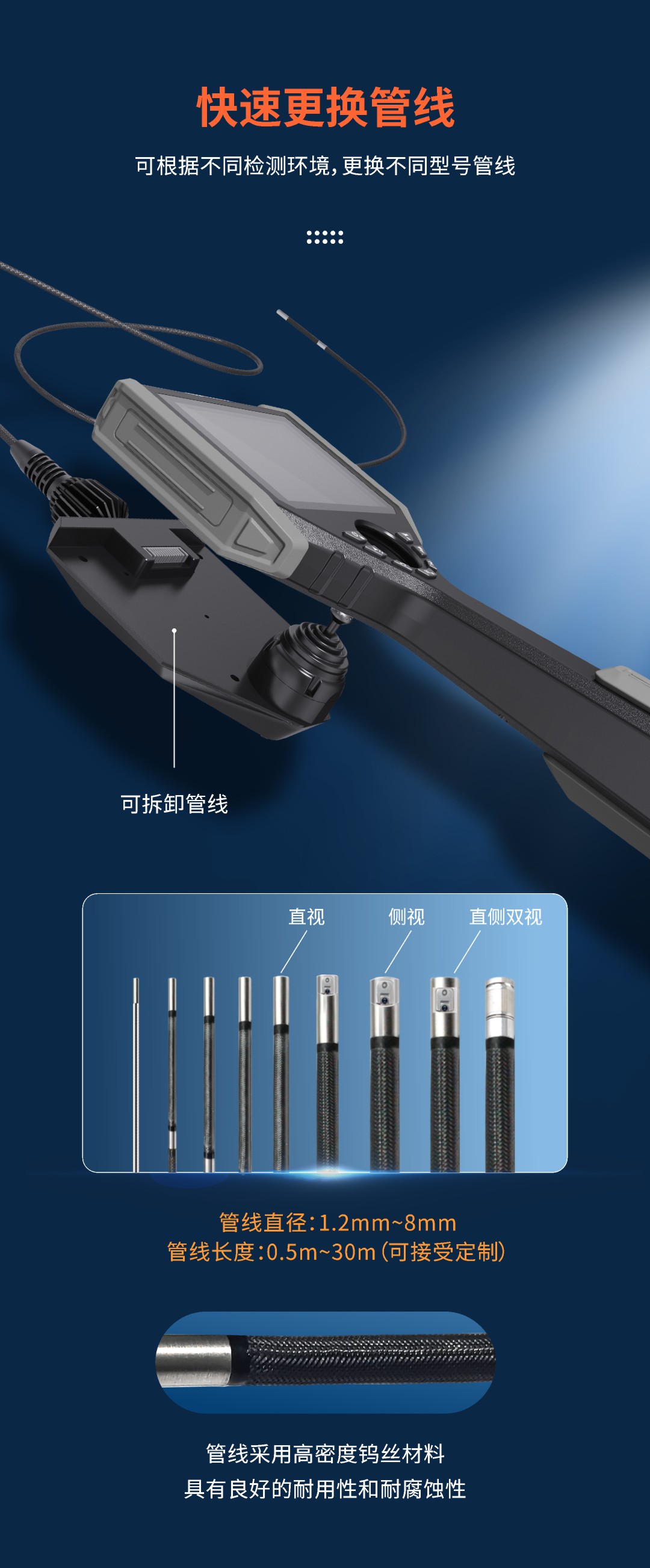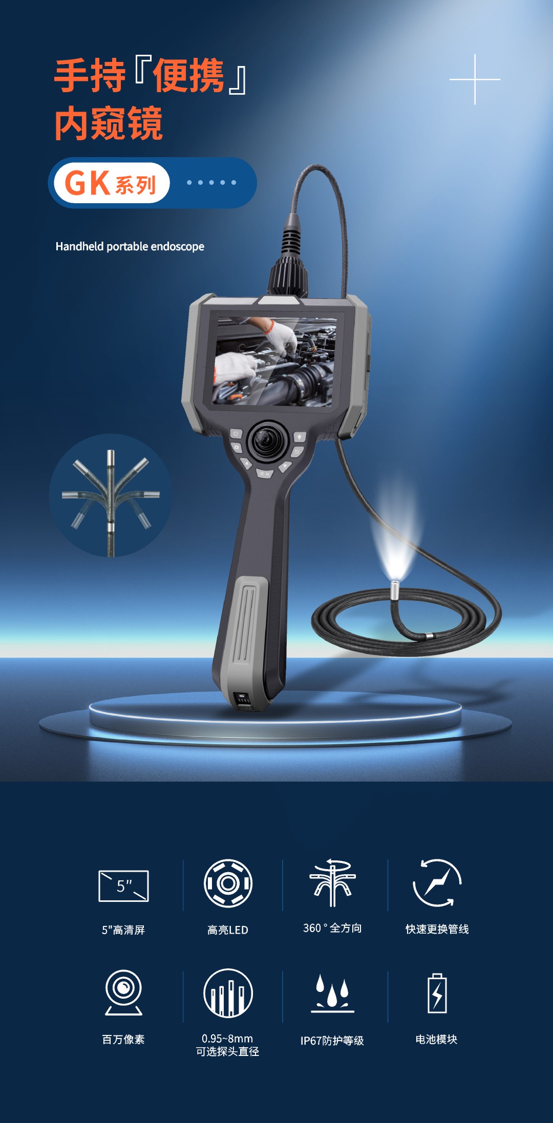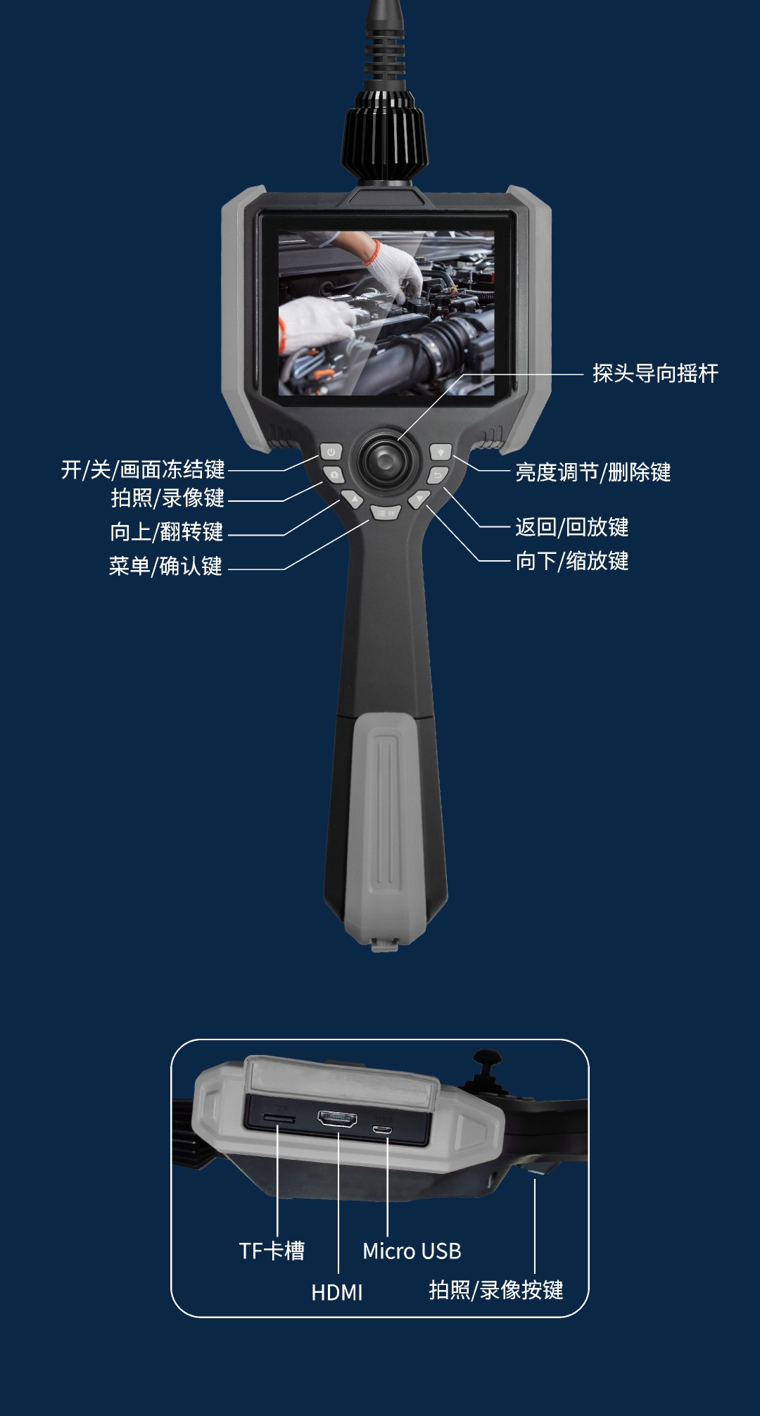 優(yōu)勢(shì)特點(diǎn):百萬高清像素,前置高亮燈,快速更換管線,5英寸大屏